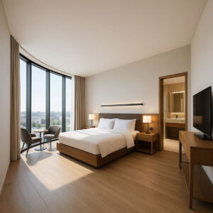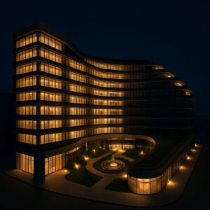 Jau Mimarlık olarak tasarlayıp projelendirdiğimiz otel yapısında, doğanın akışından ve hafif rüzgarın esintisinden ilham alarak kıvrımlı, eğrisel ve organik bir form benimsedik. Yeşil kademeli teraslarla sürdürülebilir mimari yaklaşımımızı yansıttığımız bu projede, geniş, ferah ve insan odaklı yaşam alanları oluşturmayı hedefledik.